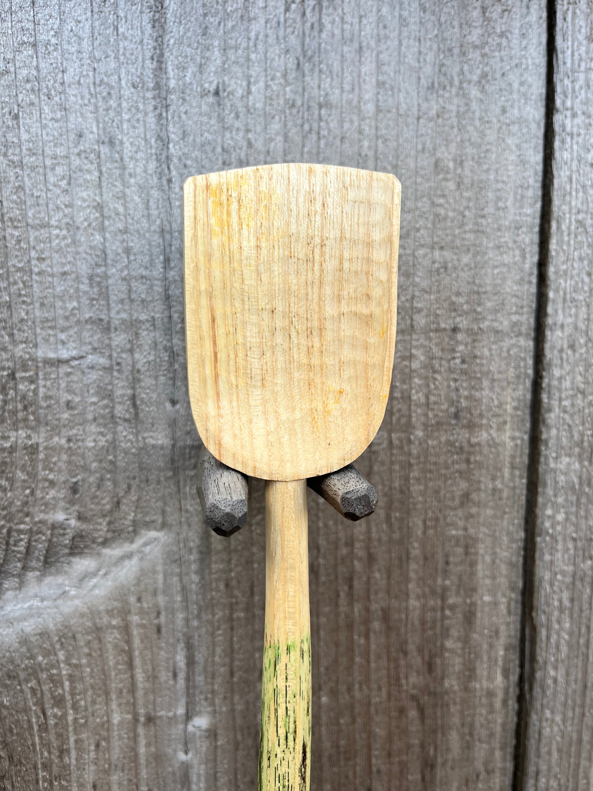 Spatula made from found Ash near Redwood City. I painted the stem with two colors of milk paint. Handcarved in SF, CA.